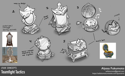 Fan concepts of the game, Teamfight Tactics. Designs were centered around a masquerade-themed set.